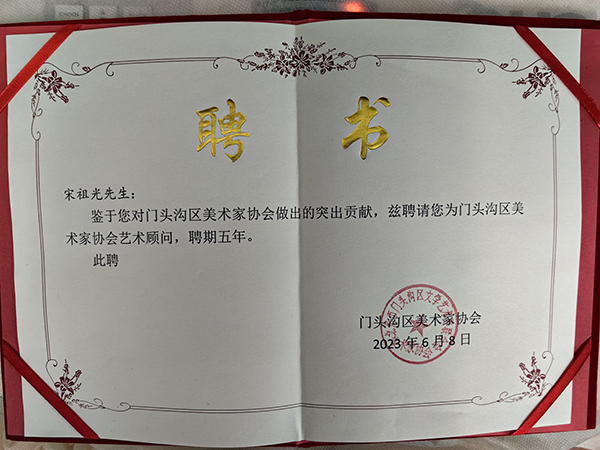 宋祖光受聘于门头沟美术家协会艺术顾问